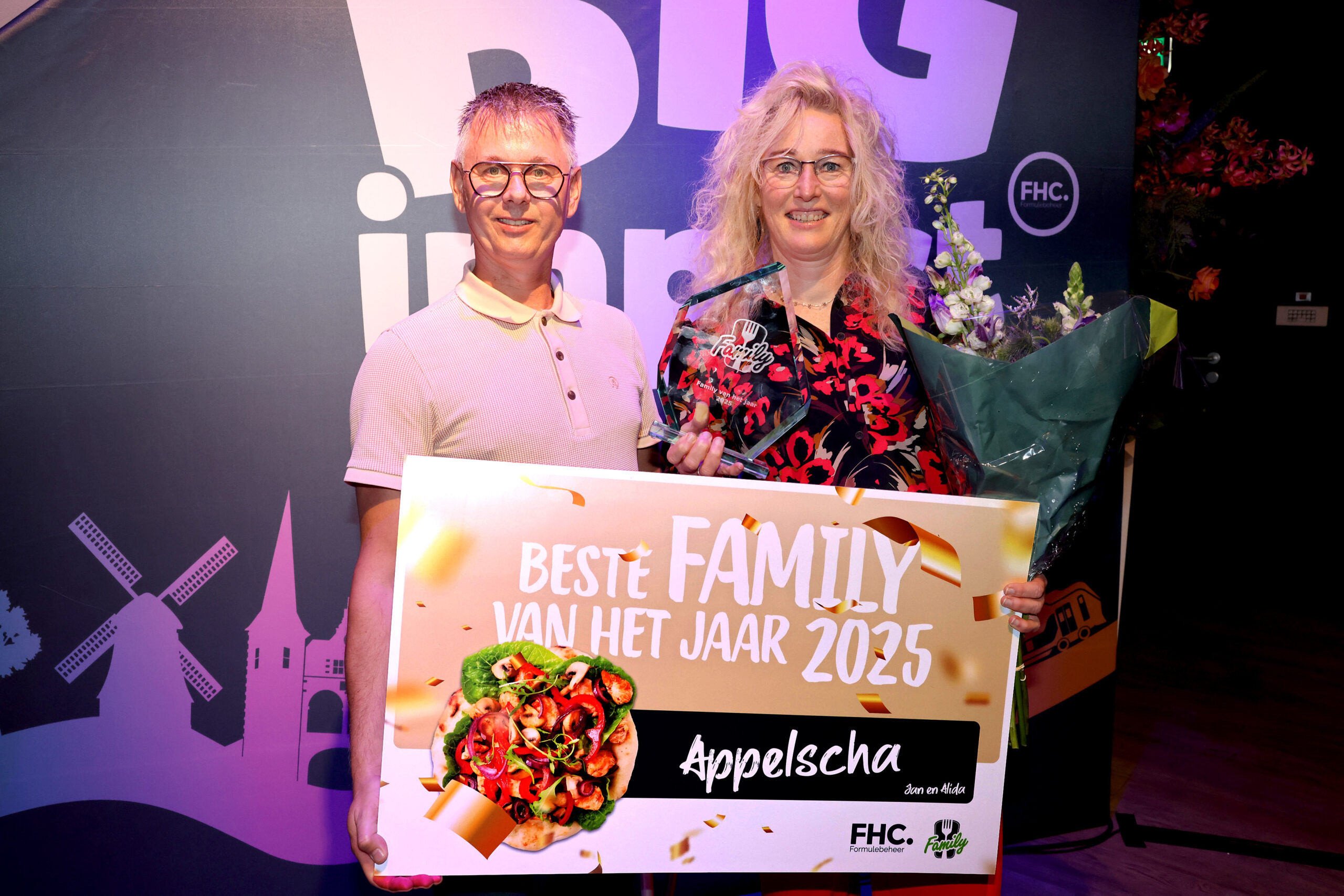 De prestigieuze titel ‘Beste Family van het Jaar’ ging naar Jan Willems en Alida van Dellen van Family Appelscha. Echte ondernemers in hart en nieren, ooit bekroond tot beste cafetaria van Nederland en inmiddels volledig overtuigd van de kracht van de Family-formule. De vestiging staat bekend om het warme familiegevoel, de gastvrijheid en de constante kwaliteit. Bij het in ontvangst nemen van de award richtten de ondernemers een dankwoord aan hun gehele team, de echte motor achter dit succes.